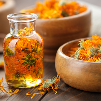 Nechtík lekársky (Calendula) je kľúčová zložka pre upokojenie a urýchlenie hojenia podráždenej pokožky.